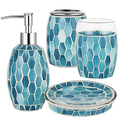 Blue Mosaic Glass Bathroom Accessories : 4pc Blue Mosaic Glass Bathroom Accessories Set With Lotion Etsy Glass Bathroom Mosaic Glass Glass Bathroom Accessories - .glass mosaic bathroom wall accessories decor ideas at zfmosaic factory,our products are used widely, especially in bathroom,living room material: