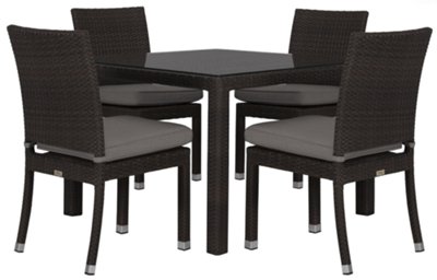 Square Outdoor Dining Table For 4 - Black Modena Rattan Wicker Dining Table With 4 Chairs ... - The abundance of square dining tables can also be a curse—and a headache.. So the best alternative for outdoor dining is to buy a metal. Work easily with square dining tables. Wooden furniture when placed outdoors, often get damaged due to moisture or uv rays. Outdoor dining set | square concrete table with 8 chairs. A collection of the best outdoor dining tables for sale online.