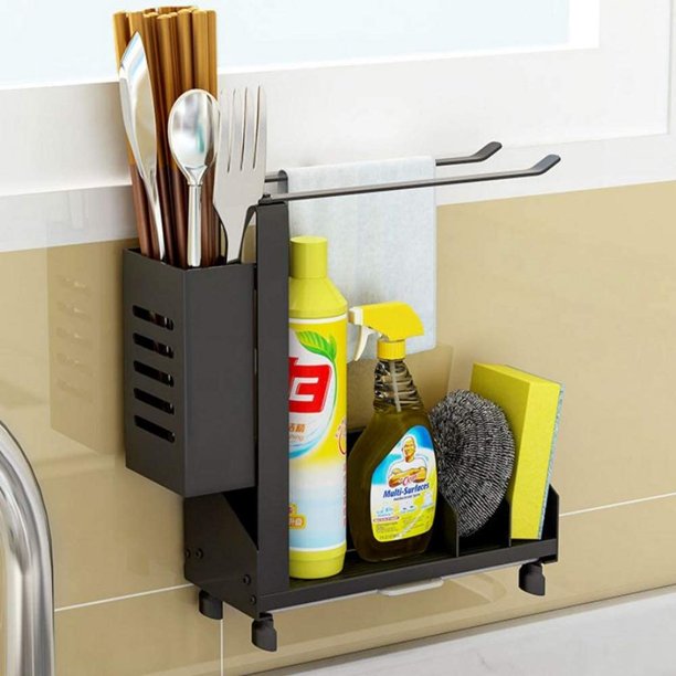 Kitchen sink decor kitchen sink organization sink organizer kitchen dishes organized kitchen kitchen ideas soap kitchen kitchen modern kitchen turn a metal planter into a kitchen caddy. Black sink tidy caddy organiser with lotion dispenser by 5five simply smart. Wet sponges and used cleaning accessories can be difficult to keep track of with a busy schedule. Click on image to enlarge. I have a little project to share today that brought some color to our kitchen and is functional.